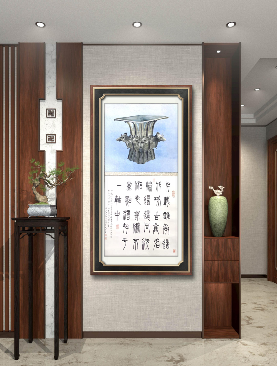 诗文:千载谁承造化功,古尊名绣道还同;沅湘气象流不尽,点滴存于一轴中。